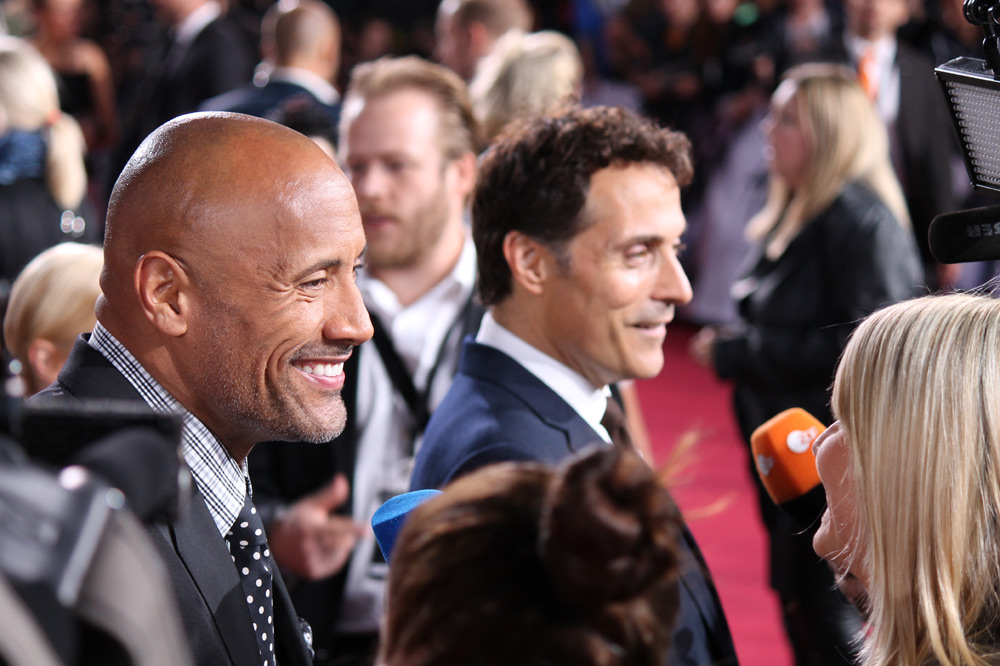 Nur die Tatsache, dass die Stars diesmal mittels Limousinen beinahe bis vor die „Bühne“ gefahren wurden, verwunderte etwas und ließ so manchen eigentlich strategisch günstig platzierten Zaungast unvermittelt in die Röhre gucken. Doch die Stars ließen sich davon allesamt nicht von ihren Fans fernhalten und genossen ihre Bäder in der Menge sichtlich. Und nach anfänglicher Zurückhaltung stürzte sich auch Dwayne „The Rock“ Johnson, der größte Star der illustren Runde, unter frenetischem Jubel der Fans in die Selfie- und Autogrammgeile Fanmeute.